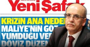 İktidara yakın Yeni Şafak gazetesi, yine Hazine ve Maliye Bakanı Mehmet Şimşek’i hedef aldı. Gazete döviz kazançlarından yüzde 25 vergi alınmasını önerdi.
