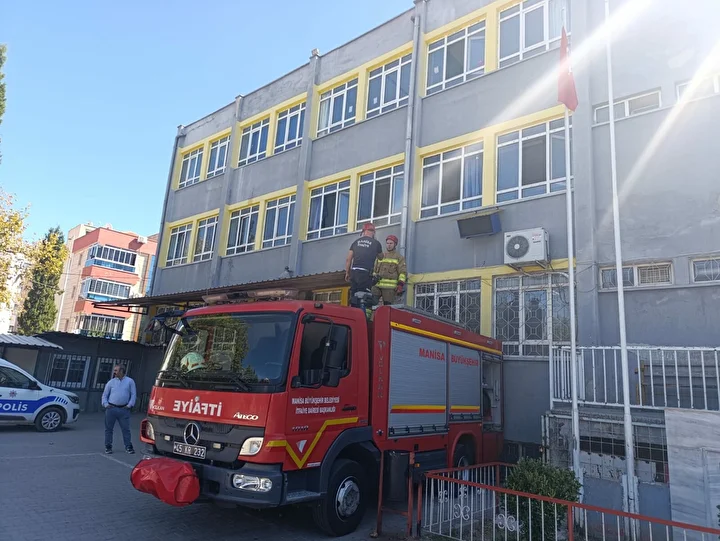 Vatandaşlar, durumu 112 Acil Çağrı Merkezi’ne bildirdi. İhbar üzerine okula Manisa Büyükşehir Belediyesi Turgutlu İtfaiye Amirliği ve polis ekipleri sevk edildi.