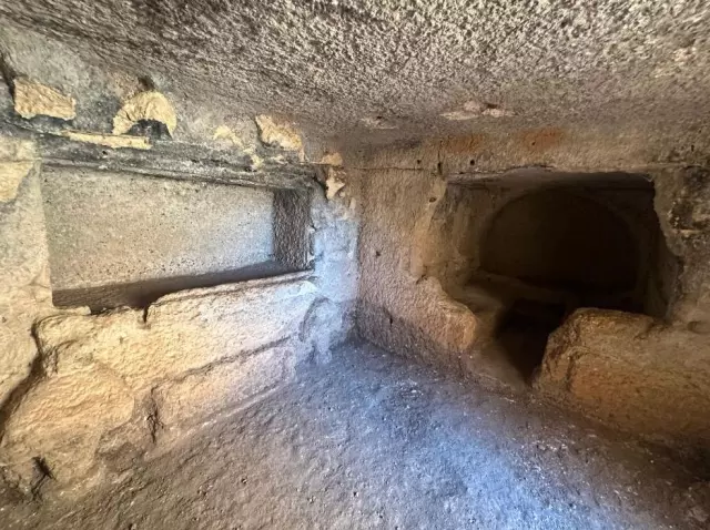 Roma ve Bizanslılar tarafından kullanılan 1800 yıllık Turuş Kaya Mezarları’nın turizme kazandırılması için 2021 yılında başlayan kazı ve temizleme çalışmalarında bu güne kadar 40 mezar odası temizlendi. 119 mezar odasının tespit edildiği Turuş Kaya Mezarları’nda Eylül ayı içerisinde başlayan kazı çalışmalarında şuana kadar 8 mezar odası daha temizlendi.